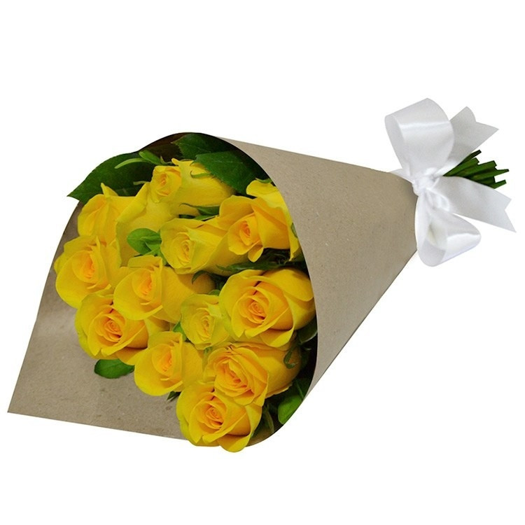 12 rosas nacionais amarelas no papel kraft para presente.