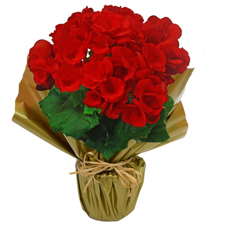 Linda Begônia Vermelha Plantada, embalada para presentear.
